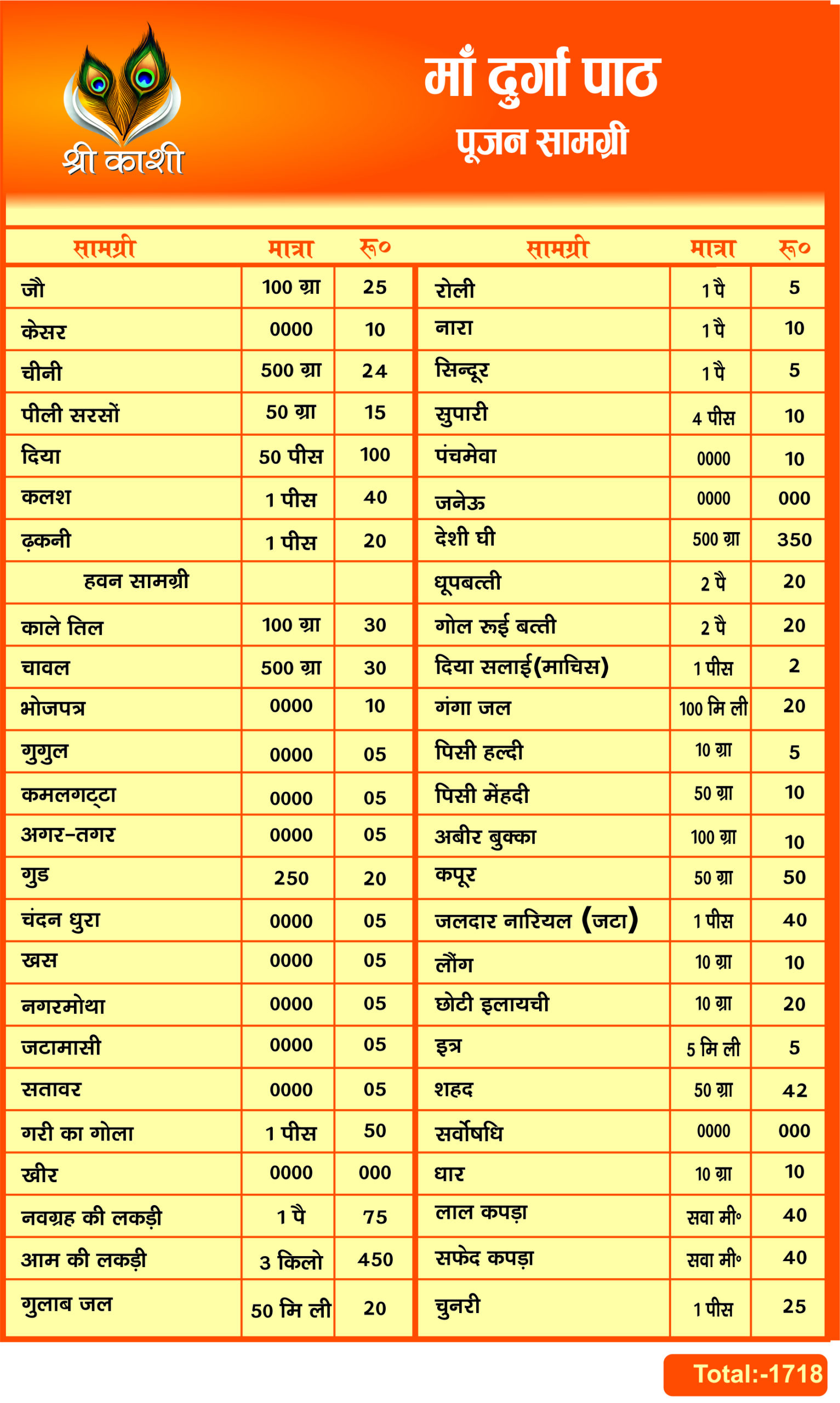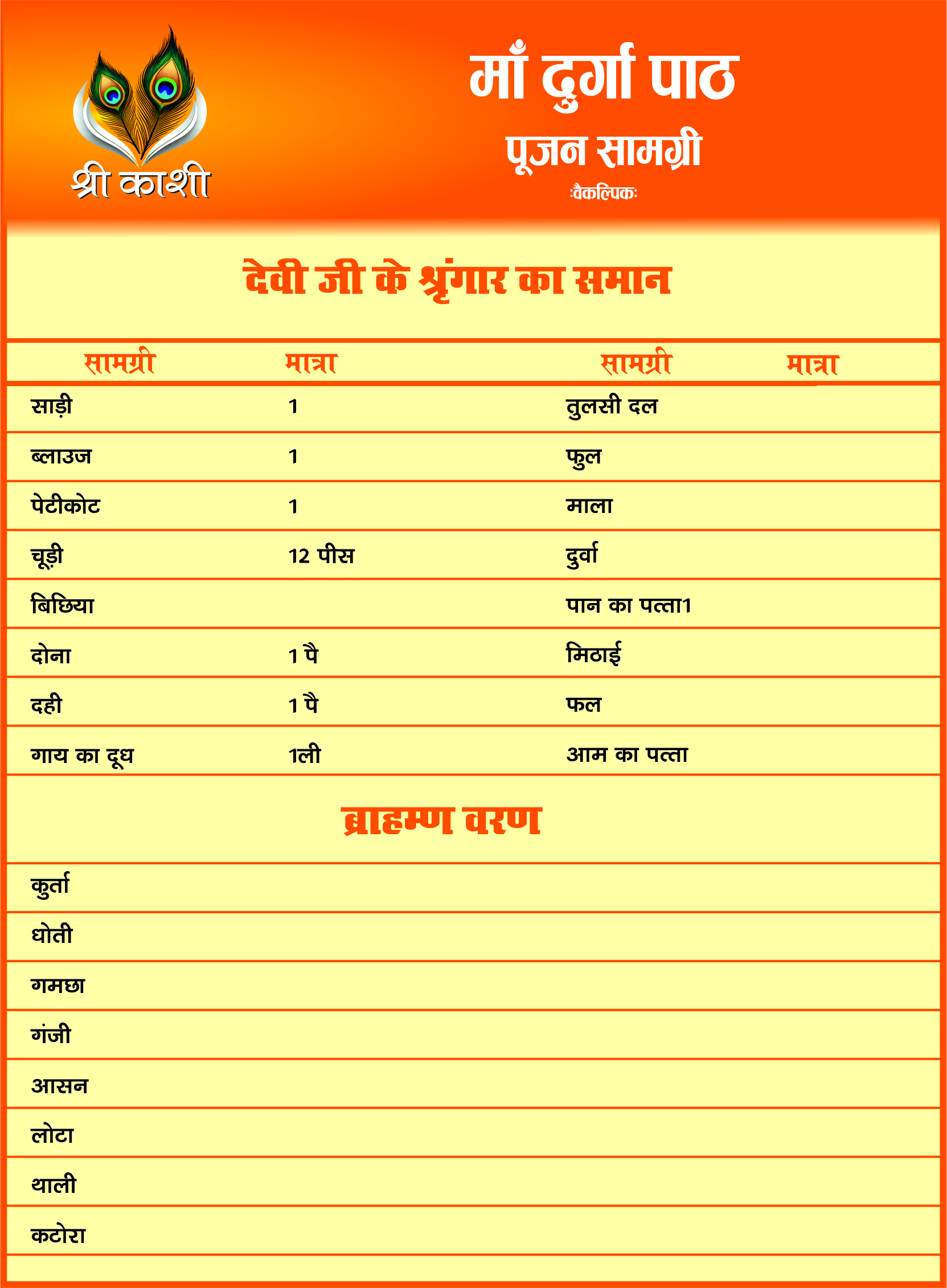 माँ दुर्गा पाठ पूजन सामग्री लिस्ट